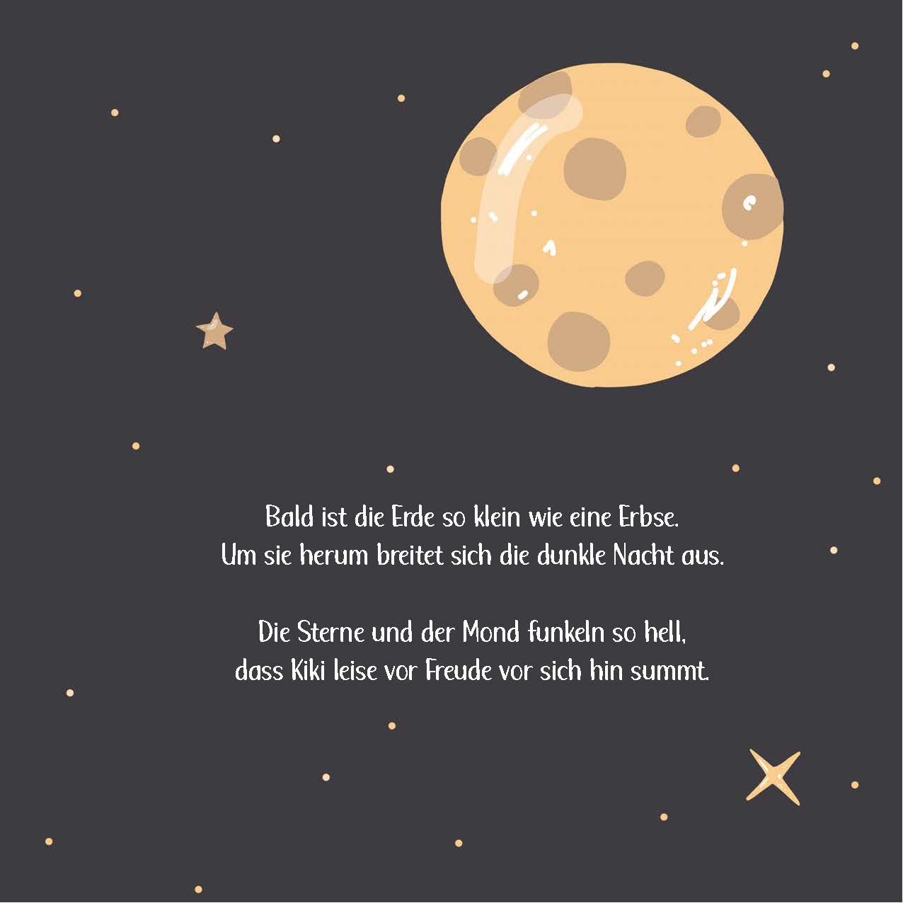 Kiki fliegt zum Mond ist ein liebevoll gestaltetes Vorlesebuch für Kinder von 3 bis 7 Jahren – perfekt zum gemeinsamen Lesen, Staunen und Träumen.